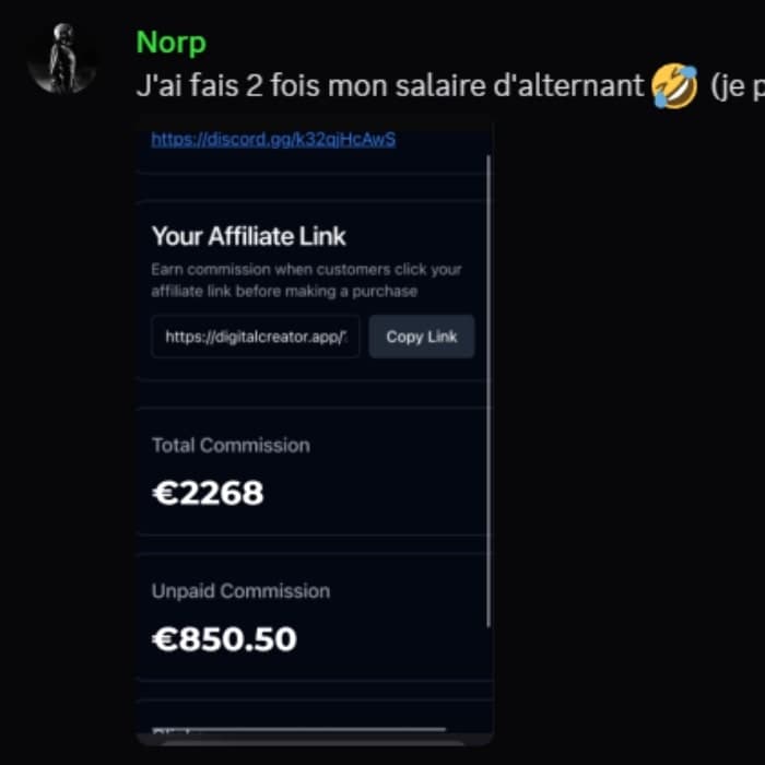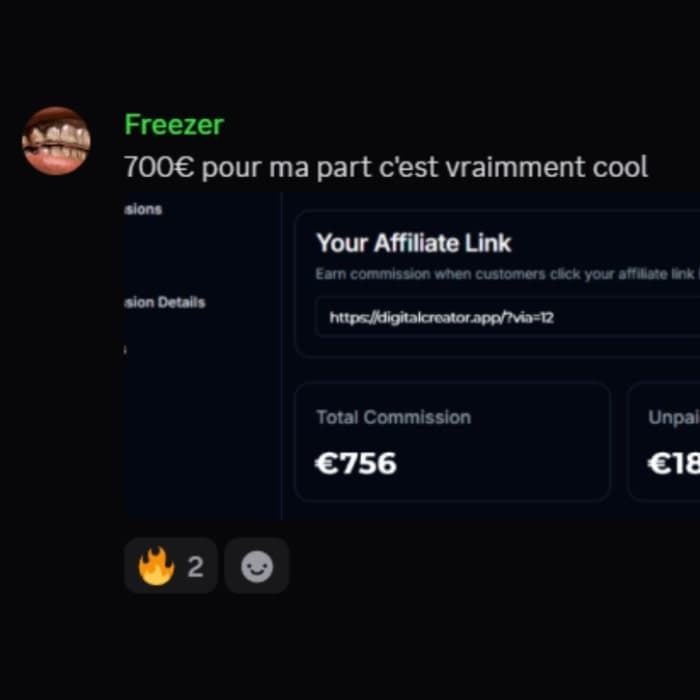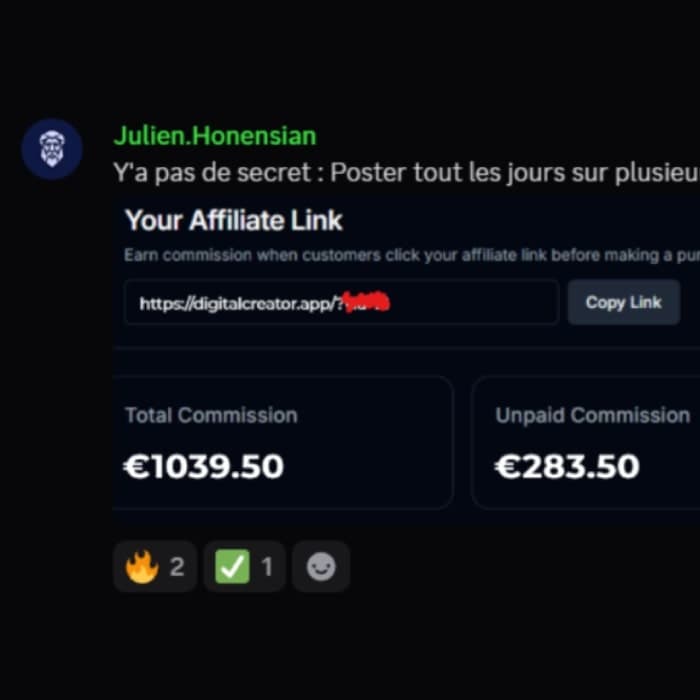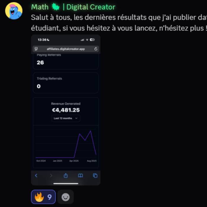 Encaisse grâce à la vente de produits digitaux (affiliation + récurrents), aux vues de tes vidéos (1€ pour 1000 vues) et aux récompenses DC™.
