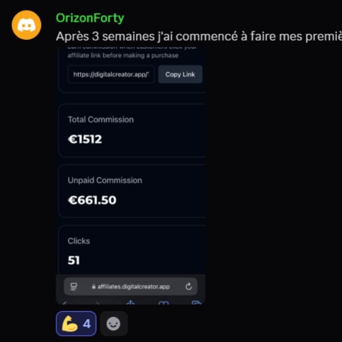 Gagne de l'argent dès les premiers jours grâce aux vues de tes vidéos (1€ les 1000 vues), vends ton produit digital dans les premières semaines et obtient des récompenses supplémentaires DigitalCreator™.