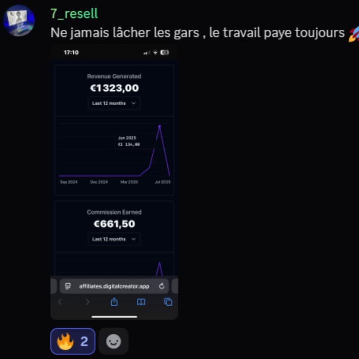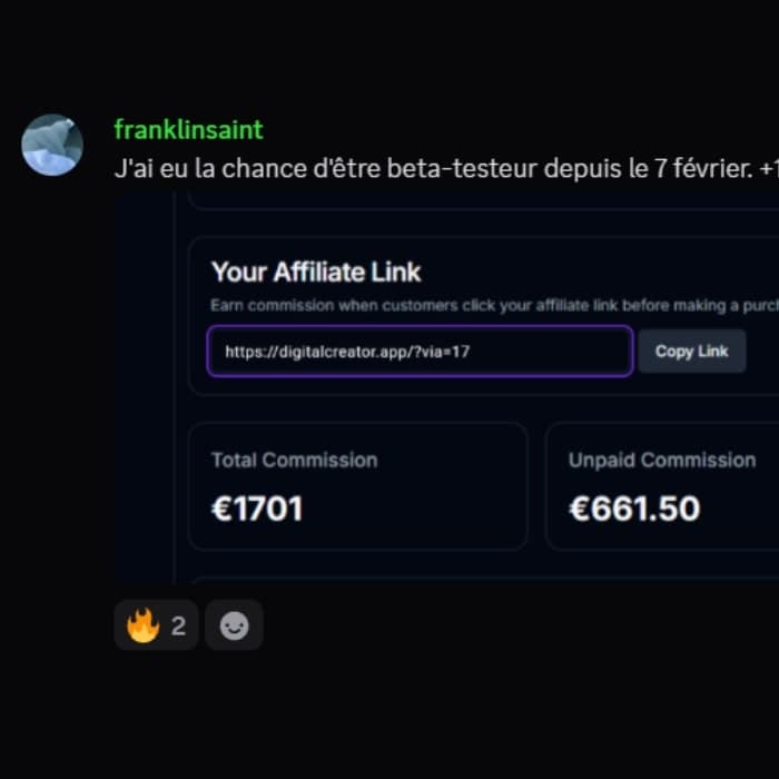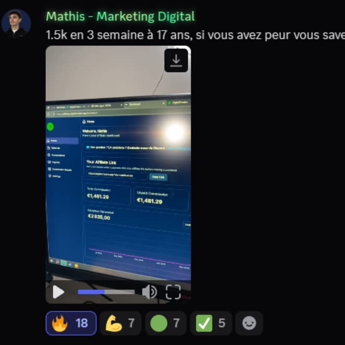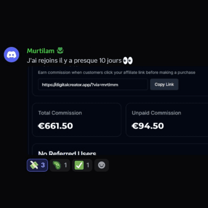 Encaisse grâce à la vente de produits digitaux (affiliation + récurrents), aux vues de tes vidéos (1€ pour 1000 vues) et aux récompenses DC™.