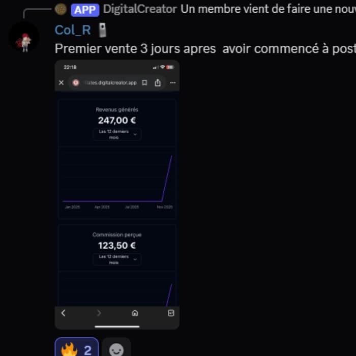 Gagne de l'argent dès les premiers jours grâce aux vues de tes vidéos (1€ les 1000 vues), vends ton produit digital dans les premières semaines et obtient des récompenses supplémentaires DigitalCreator™.